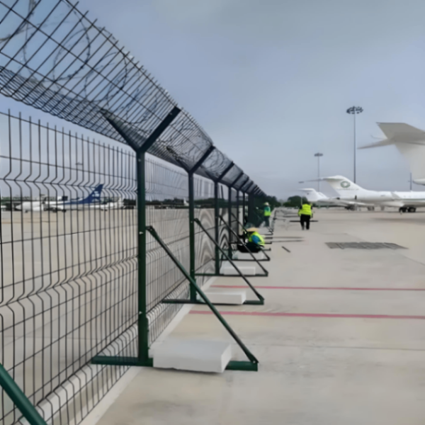 机场护栏网是一种围栏设备,广泛用于机场周围,具有安全、美观、实用、方便运输和安装的特点。机场护栏网的表面处理是浸镀或热浸镀锌,由优质低碳钢丝或铝镁合金钢丝通过喷焊制成。机场护栏网顶部安装刀片和螺丝将提高机场护栏网的安全指数。