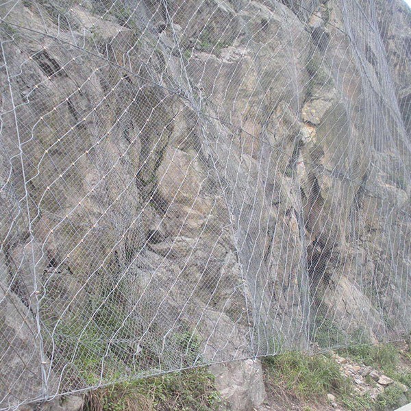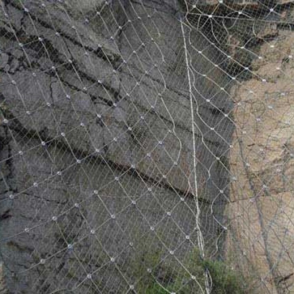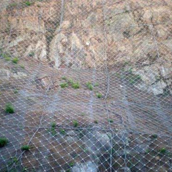 GAR2型主动防护网是采用Φ8的钢丝绳(抗拉强度为1770Mpa,破断拉力>40KN)编制并在结点处用专用“十字扣”固定而成,为边坡防护网的主要特征构件之一,在主动防护中通过钢丝绳网的覆盖来实现边坡的加固,其开放特征可以实现对坡面天然植被和植被生长条件的17631598285佳保护,实现环境保护与灾害治理的有机结合;在被动防护系统中,其柔性特征充分体现了“以柔克刚”的思想,实现崩塌落石的有效拦截。