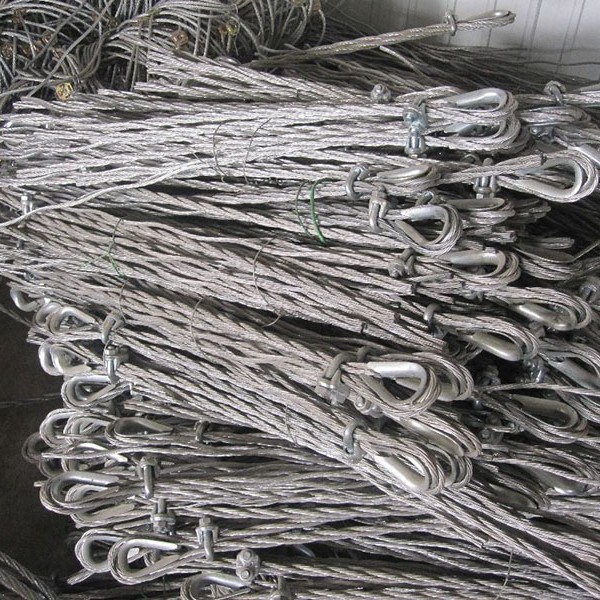 钢丝绳锚杆在边坡防护网系统中锚杆分为两种:中空注浆锚杆和钢丝绳锚杆,关于中空注浆锚杆我们已经做了详细的介绍,在这里我们主要讲述一下钢丝绳锚杆的介绍钢丝绳锚杆生产工艺:将钢丝绳锚杆对折围绕在热镀锌鸡心环上,并用绳卡固定(注:U型绳卡的使用方法)钢丝绳锚杆选用16mm的钢丝绳,其直径是普通钢丝绳的两倍。锚杆足够结实,抗拔力可达80KN以上。钢丝绳锚杆通过固定侧拉支撑绳来起到加固边坡防护网系统。随着边坡