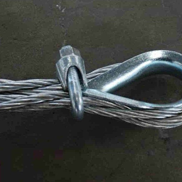 钢丝绳锚杆生产工艺:将钢丝绳锚杆对折围绕在热镀锌鸡心环上,并用绳卡固定(注: